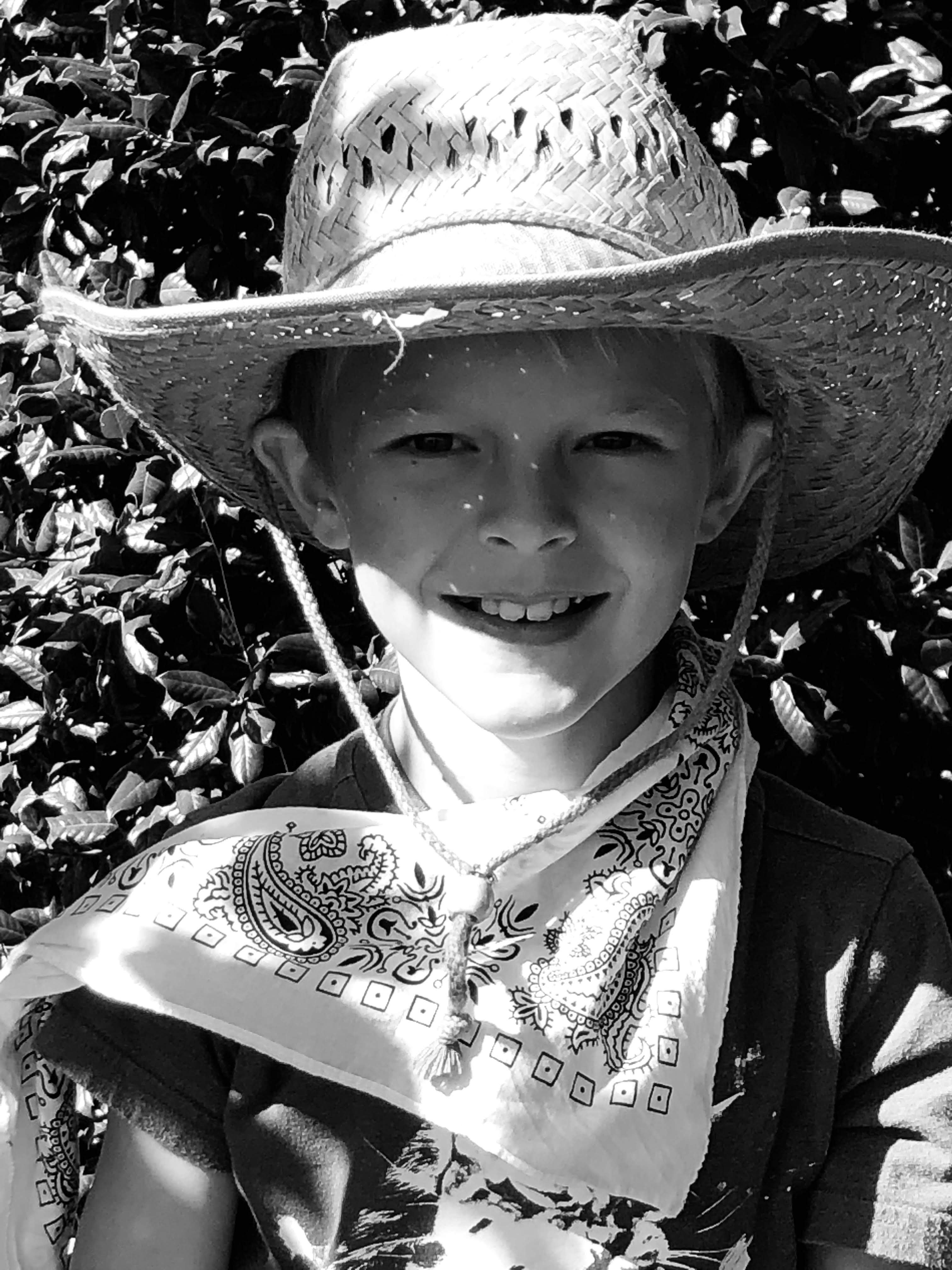 We took 1/2 of the class outside to take pioneer pictures. Each child took turns putting on a cowboy hat, kerchief, or kerchief bonnet for their pioneer pictures, while the other half of the class stayed behind to update their journals. Then we switched.